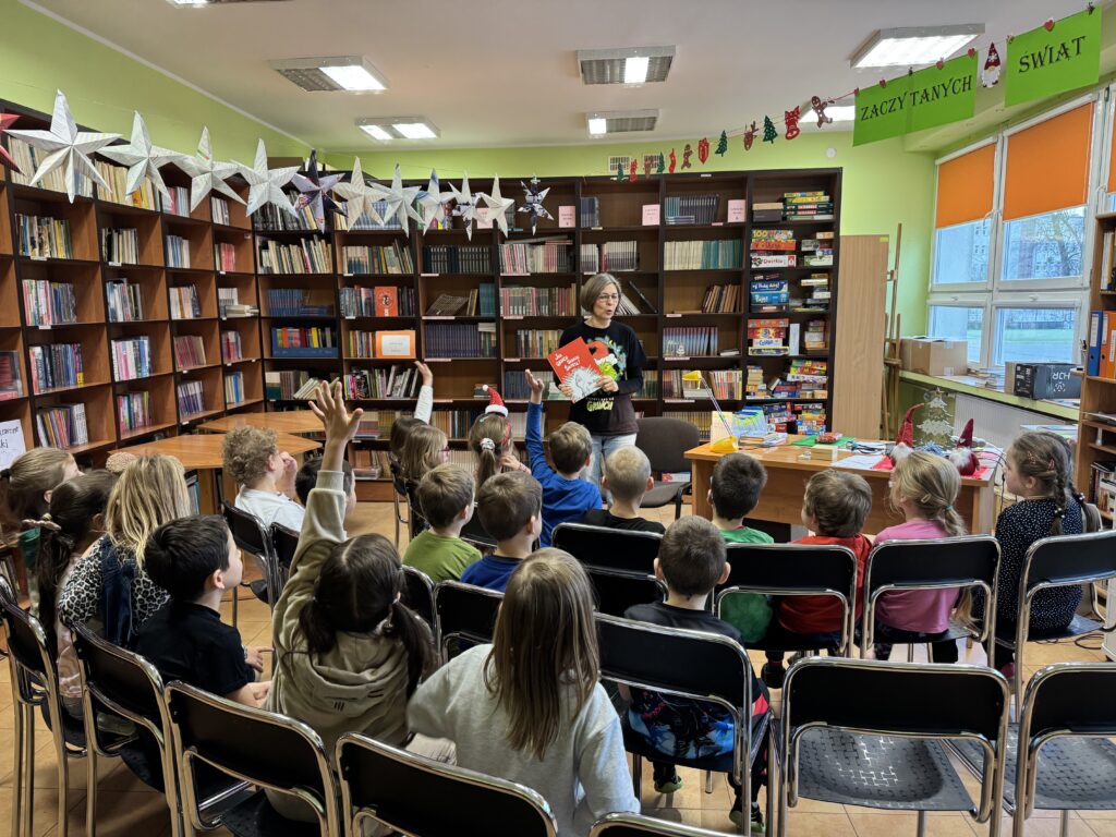 Wyjście do biblioteki szkolnej – wysłuchanie bajki „Jak Grinch skradł święta!” Dr. Seuss 🎄🎁